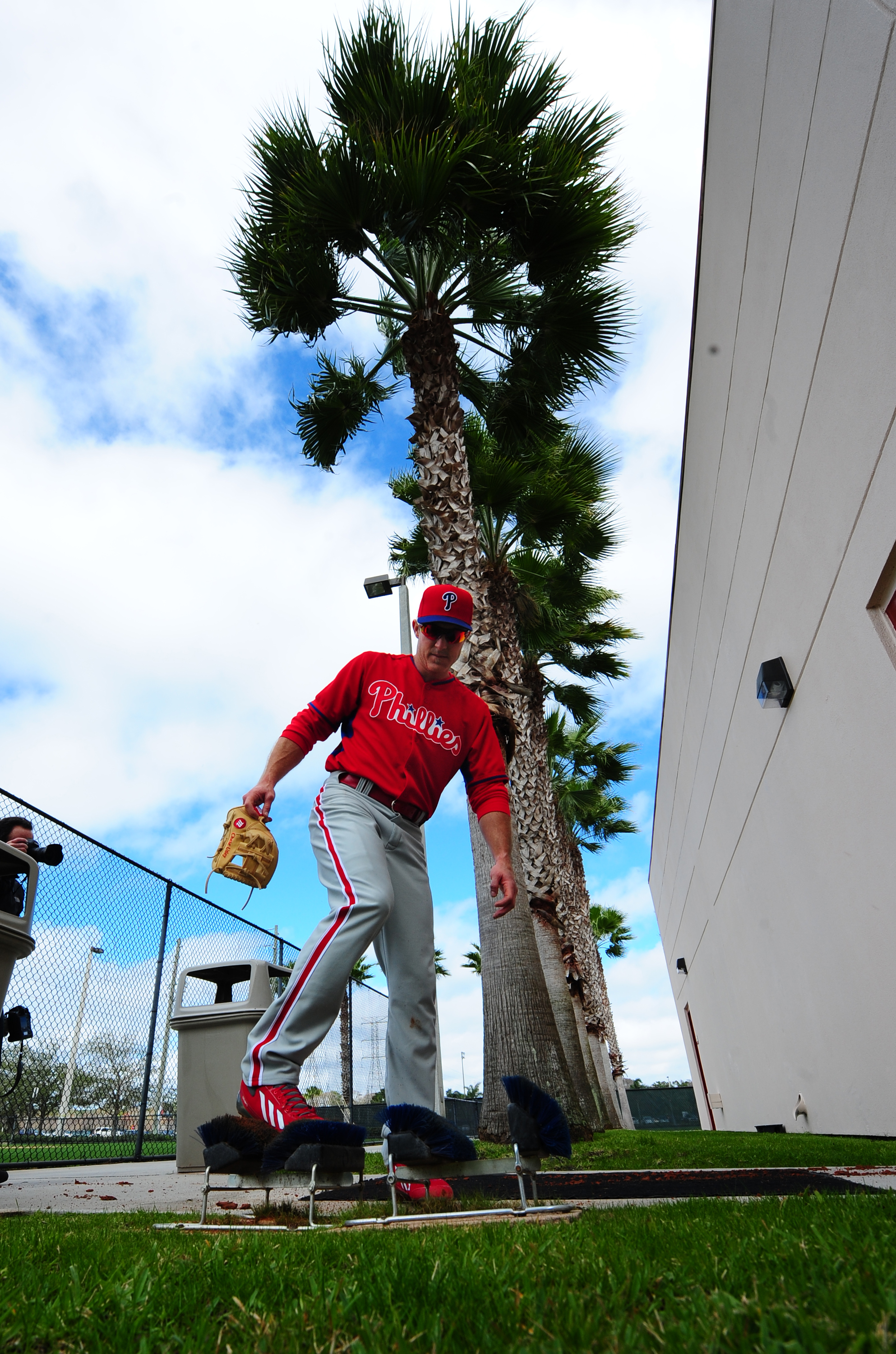 Pitchers and catchers had their first official workout yesterday but that didn’t stop over 40 Phillies who play all over the baseball diamond to arrive in camp much earlier than that. Maybe it was cabin fever from all the snow we’ve had this winter or maybe it was the eagerness to get back on the field. Whatever the reason, we’re excited to see them warming up together, working with the Phils coaching staff and spring training instructors, including Roy Halladay and Brad Lidge, and preparing for games to begin in just a little over a week and a half.