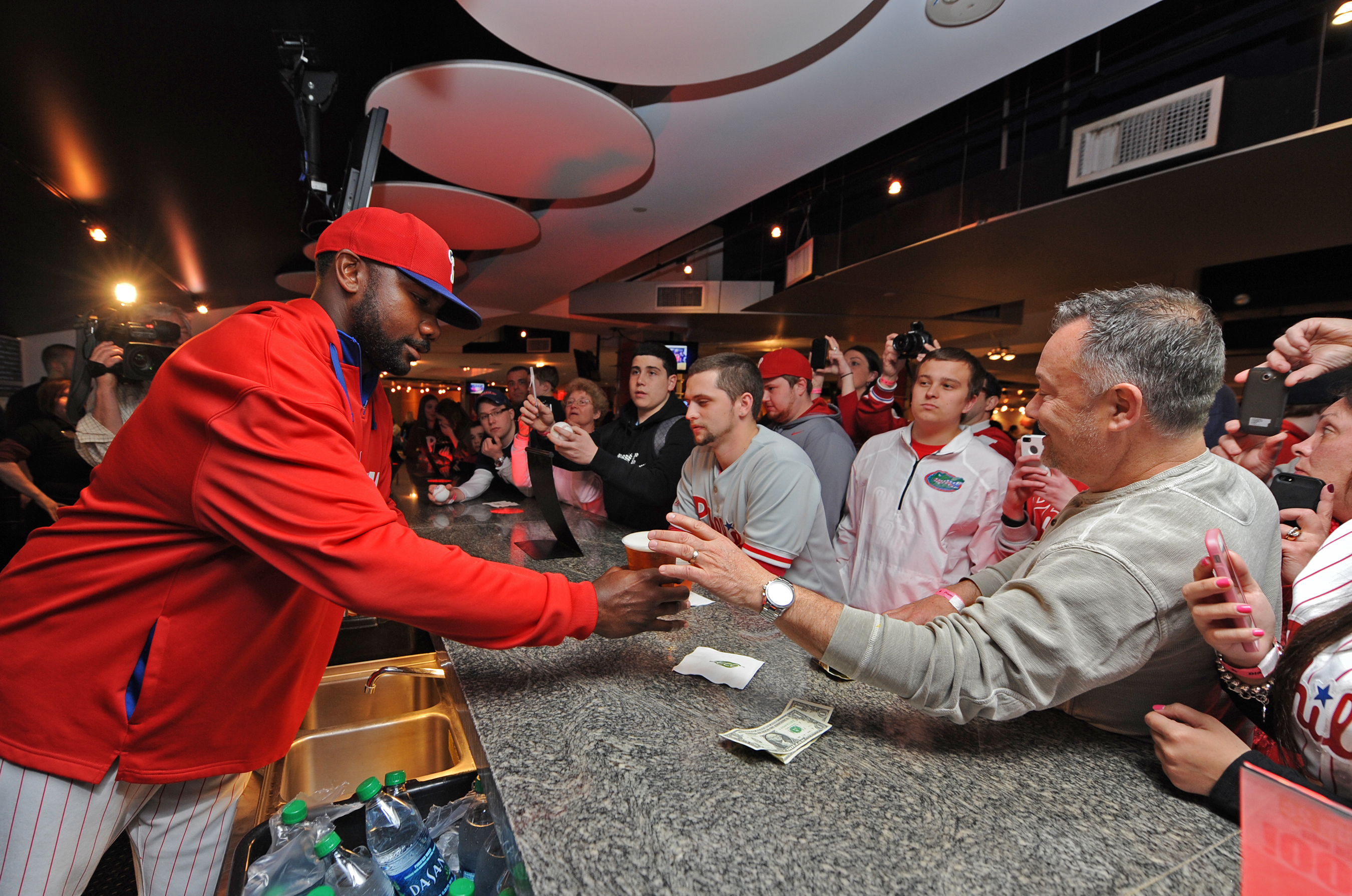 Phillies centerfielder Ben Revere has a blast posing for selfies with some very excited fans on the Budweiser Rooftop before the game. Say cheese!