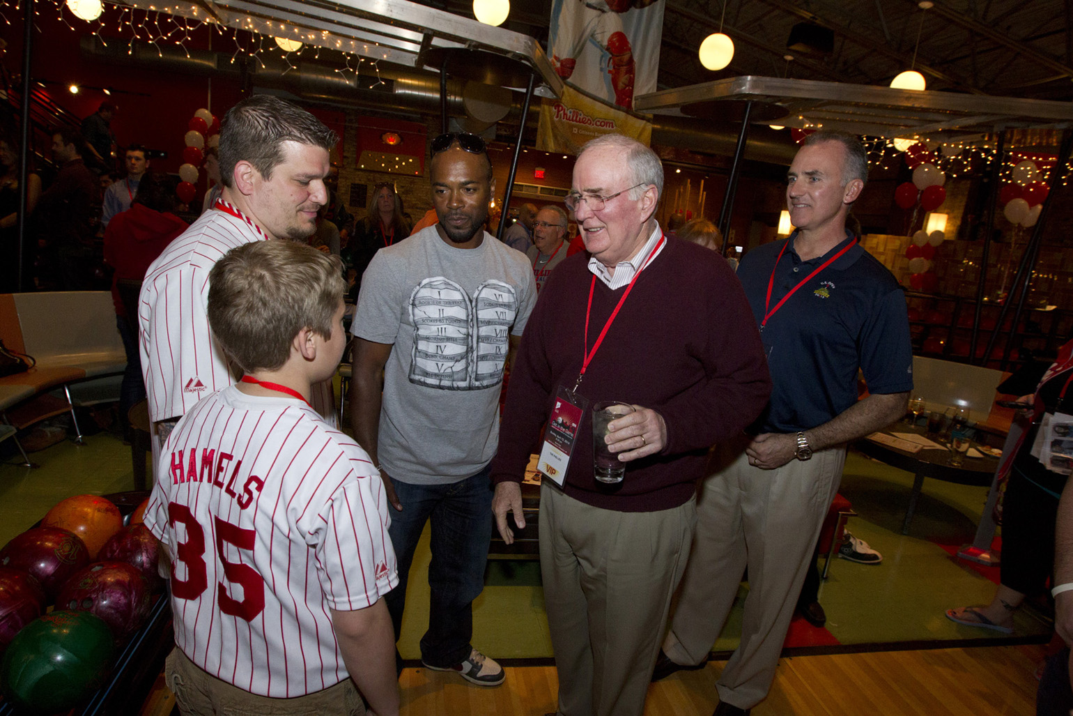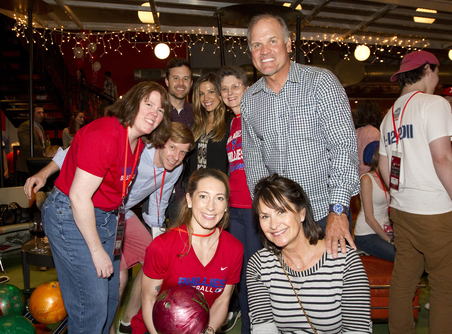 He’s used to his role behind the plate and catching strikes from the likes of Cliff Lee and Cole Hamels. But last night, Carlos Ruiz was doing a pretty good job of throwing them himself as he hosted the Philadelphia Futures Get in the Game bowling event held at North Bowl in Northern Liberties. All proceeds from the evening support Philadelphia Futures’ academic enrichment and college guidance activities for students. The player and coaching staff came out in full force with outstanding representation at the fundraiser as well. Gotta support Chooch, right? Especially when it’s for a great cause.