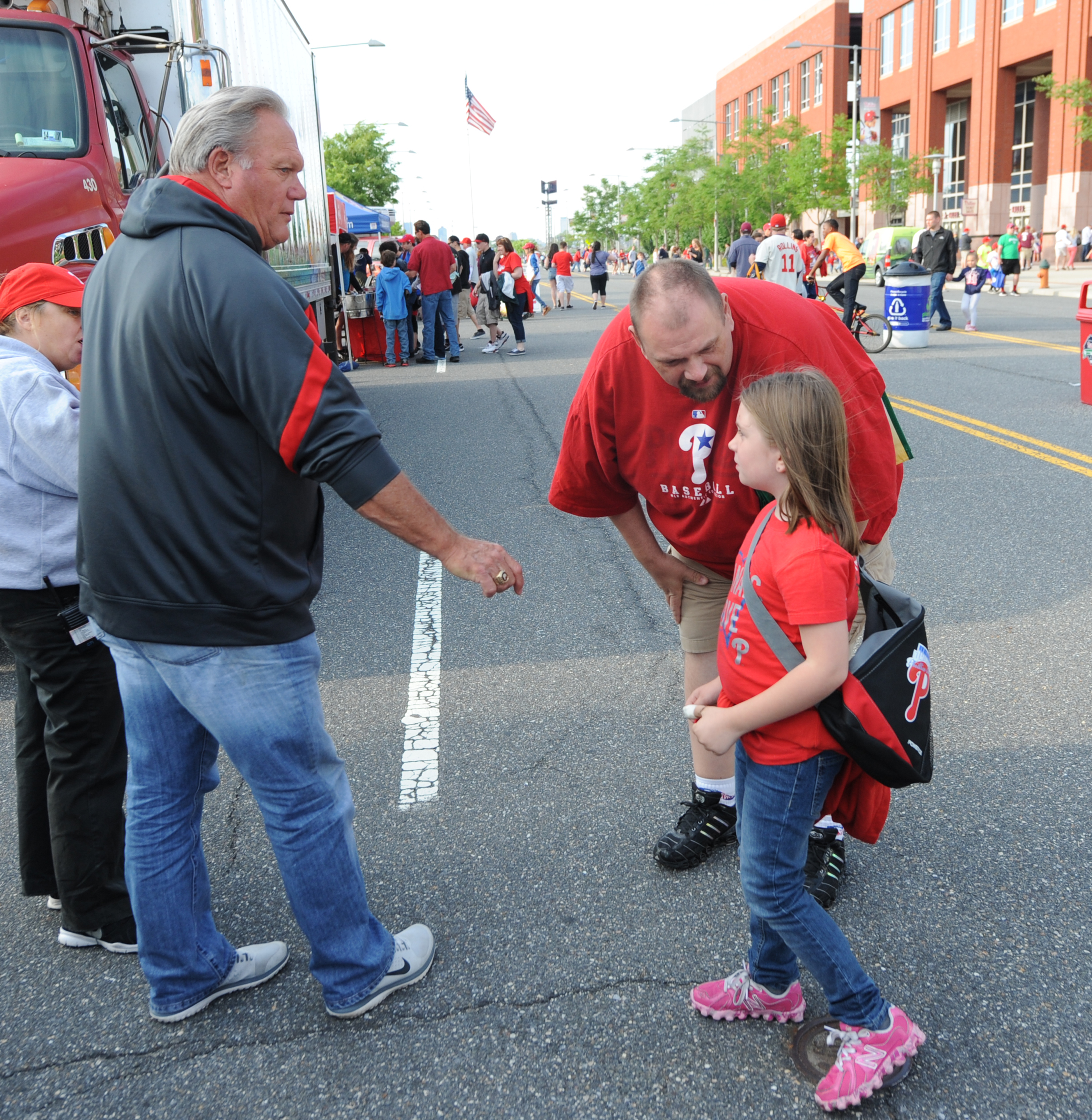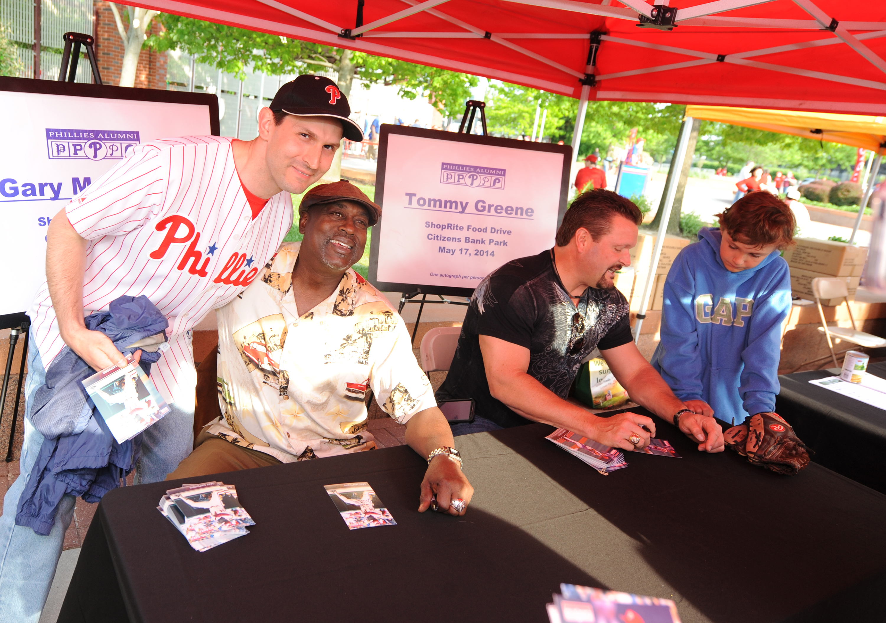Phillies alumni got into the act with Greg “Bull” Luzinski, Gary “Sarge” Matthews and Tommy Greene lending a hand and signing autographs for fans.