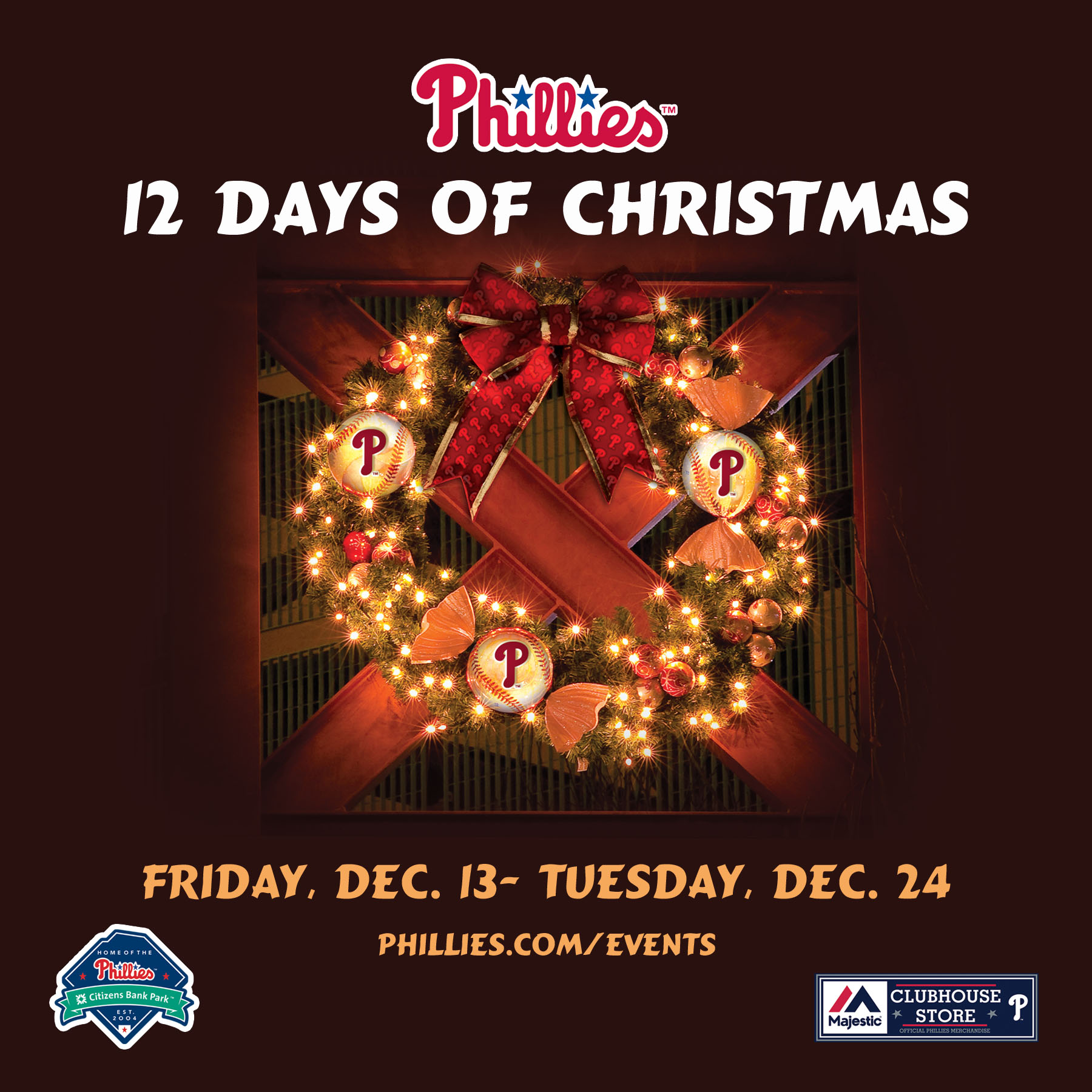 Now presenting the Phillies 12 Days of Christmas Event, which runs from December 13 through December 24 at the Majestic Clubhouse Store — a drumroll from those drummers drumming would be nice right about now… Directions: Please read or sing aloud, if you’re so inclined, to the melody of “The Twelve Days of Christmas.” Remember to pace yourself, there are a lot of days and deals going on here!