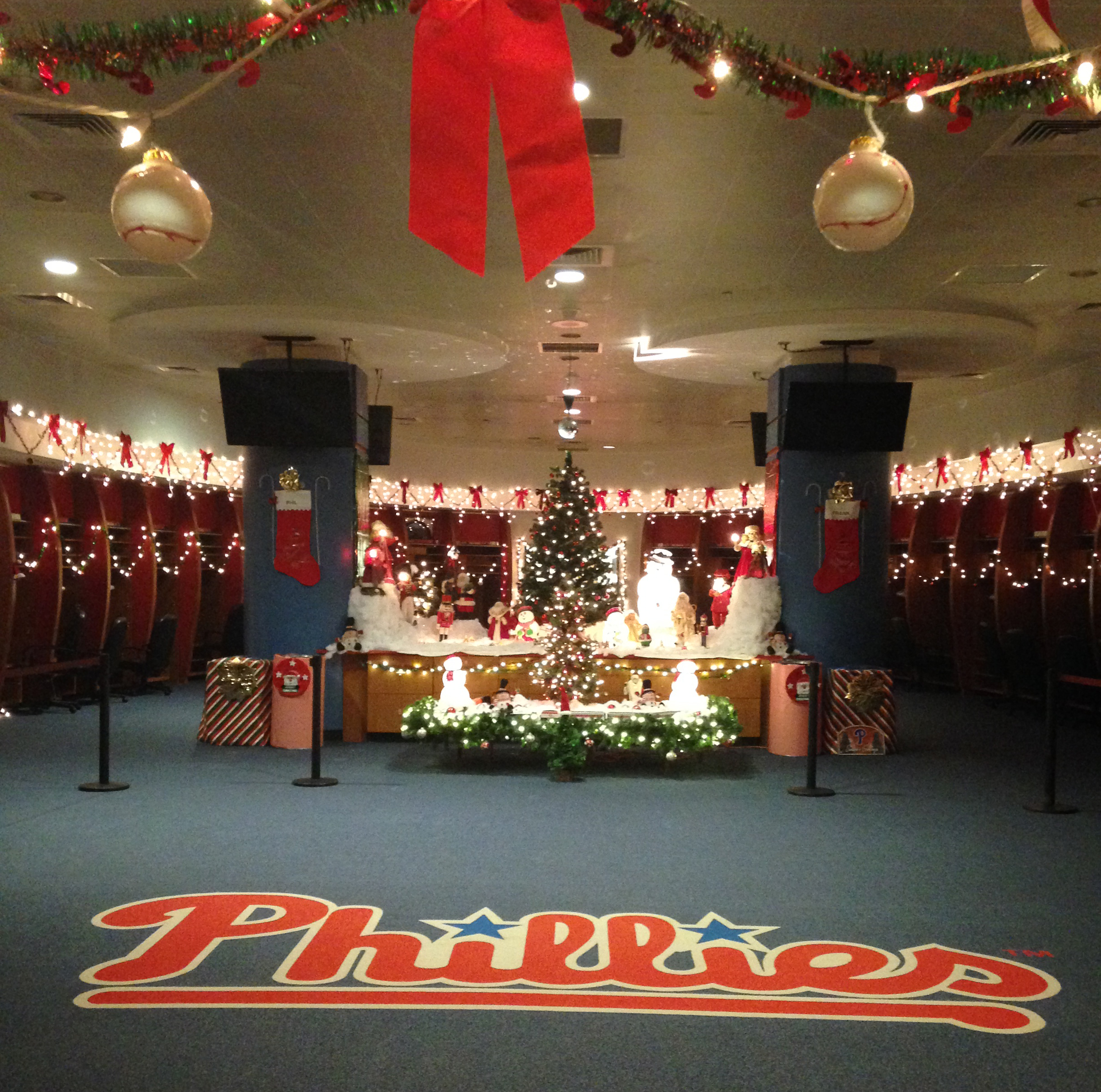 First, check out these awesome Phillies fans getting their photo taken over yonder. Holiday Family photo – check!